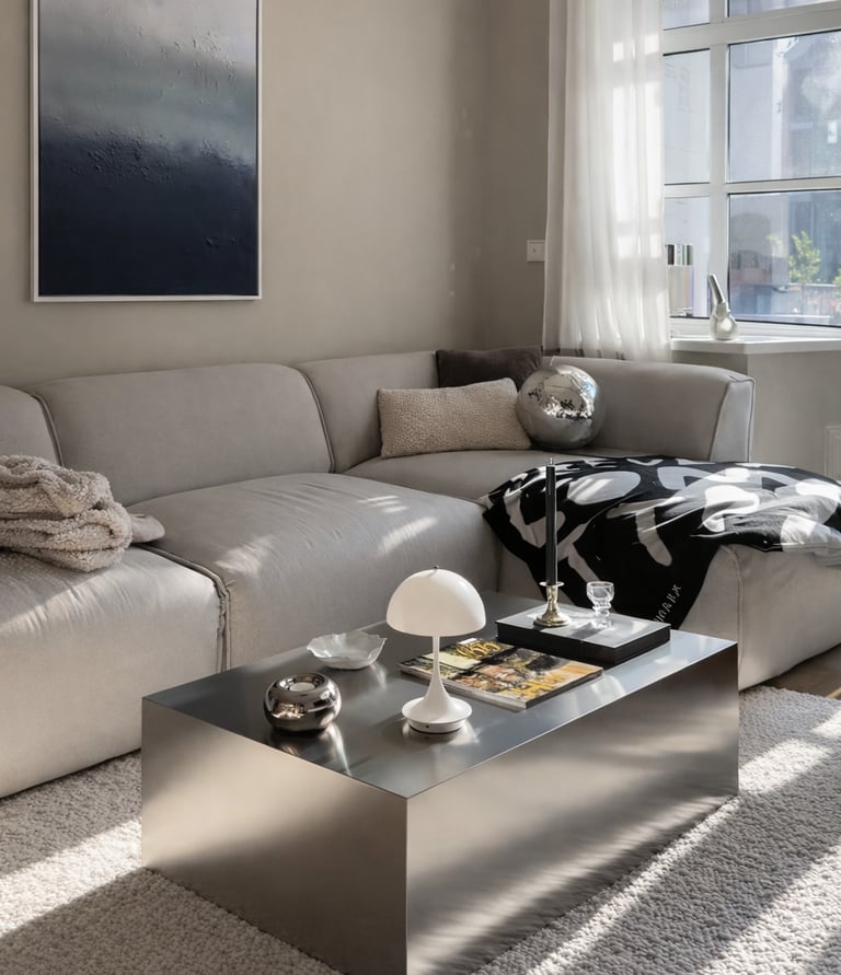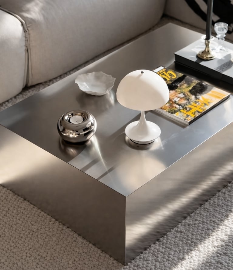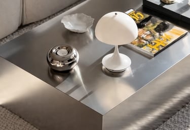 Mesa de centro de acero con diseño brutalista y estilo minimalista, ideal para salones modernos y espacios contemporáneos. Fabricada en acero inoxidable con acabado satinado, destaca por su estructura sólida, líneas limpias y estética escultórica. Una mesa de centro moderna, resistente y atemporal que combina funcionalidad y diseño.